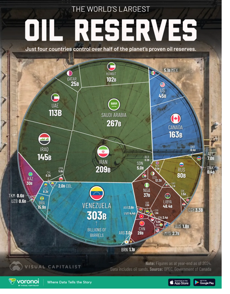 Visual Capitalist, All of the World’s Oil Reserves by Country, in One Visualization, December 30, 2025. Bruno Venditti. Credit: Sam Parker